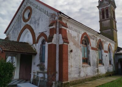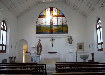 Esta Santa Francesa fue elegida como Patrona de Beruti en honor a la esposa del fundador que se llamaba Clotilde Poggio. Fue inaugurada en 1930. Es de estilo gótico simple, ventanales con vidrios de colores: azul, celeste y dos tonos de amarillo, que son los colores heráldicos elegidos por la Familia Guazzone. Su torre está en la parte trasera. Sus campanas suenan tres veces al día al Alba, el Ángelus y la Oración.