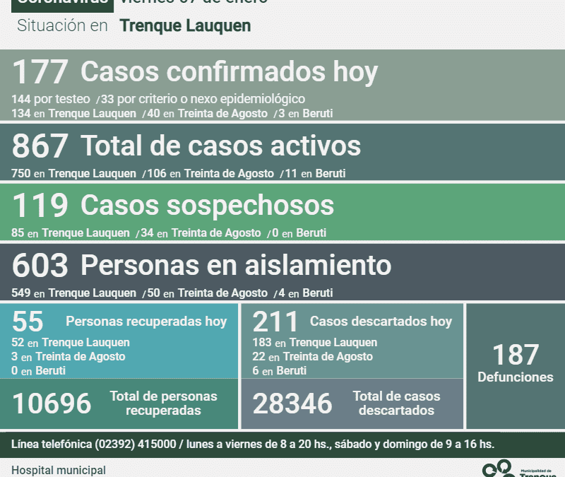 La subsecretaría de Salud municipal informó esta mañana (viernes) que son 867 los casos activos de Covid-19 en el distrito después de que en las últimas 24 horas se confirmaran 177 nuevos casos, 211 fueran descartados y se recuperaran otras 55 personas, quedando,...