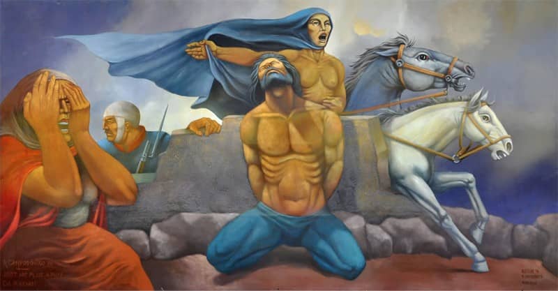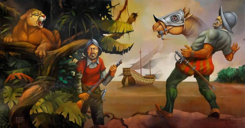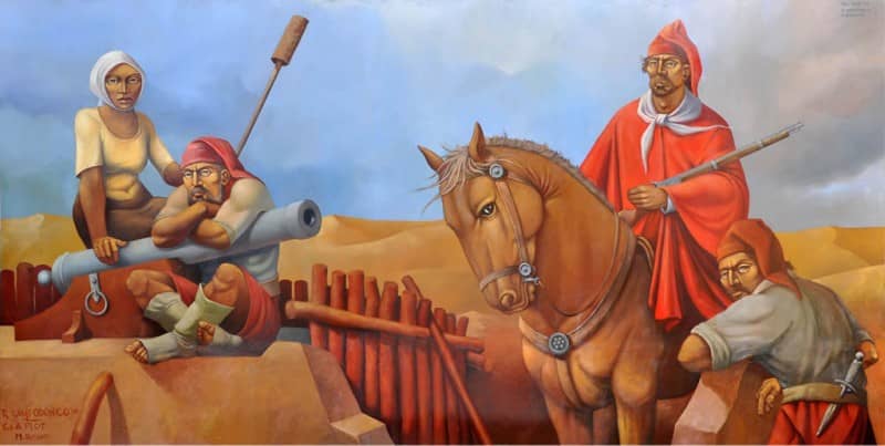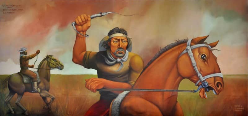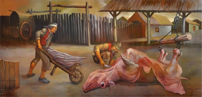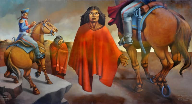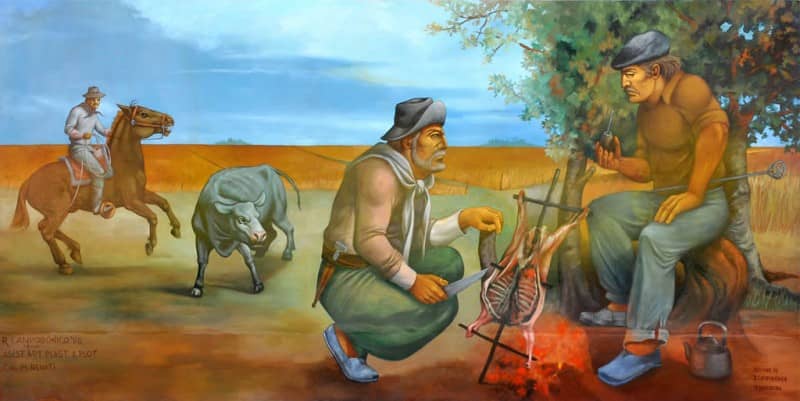 La Gobernación de la Provincia de Buenos Aires convocó a Rodolfo Campodónico en 1998 para realizar la mayor secuencia histórica realizada en el país: un conjunto de 28 murales, verdadera narración que acerca la historia, dirigida al público de manera poco usual.