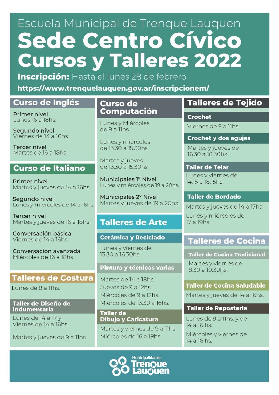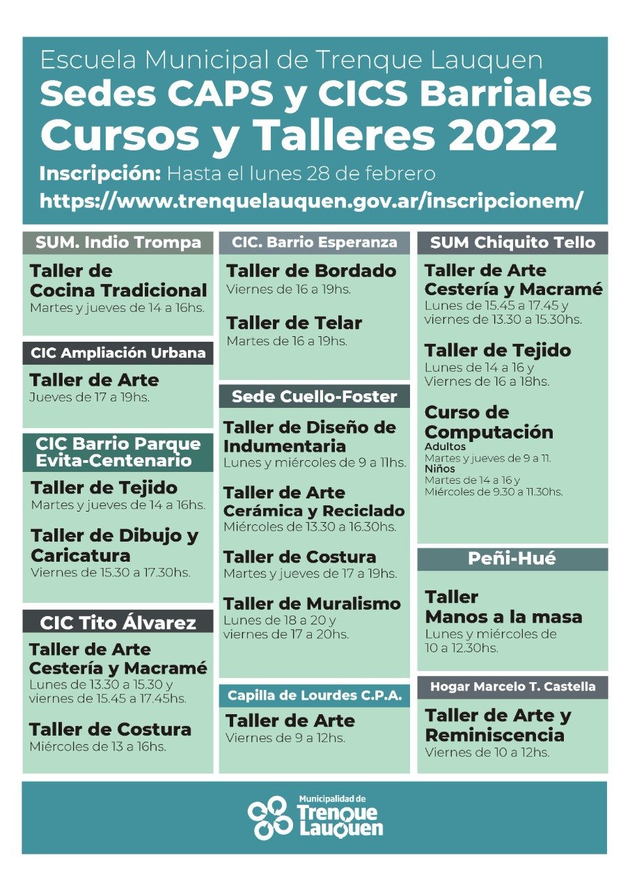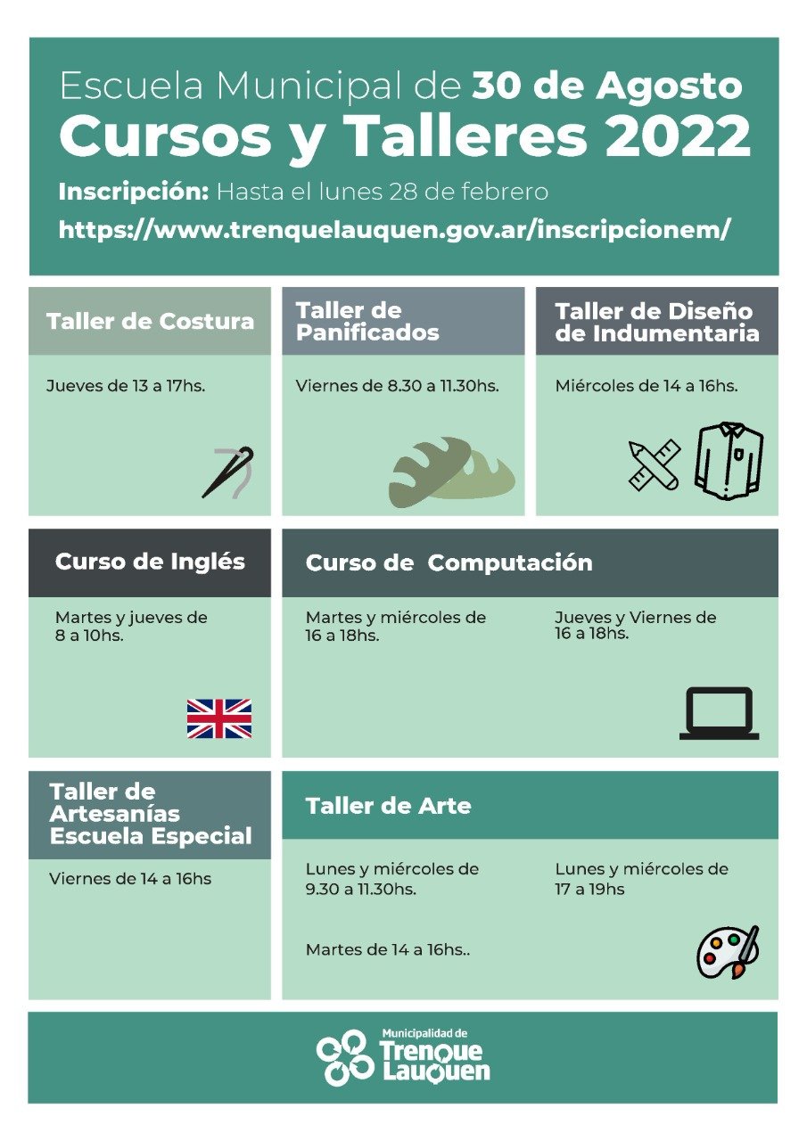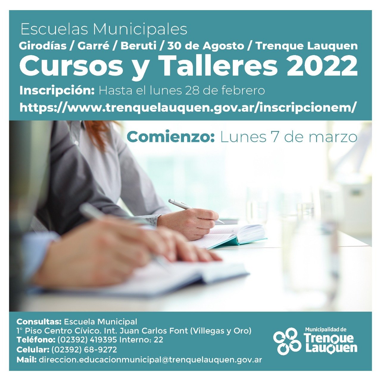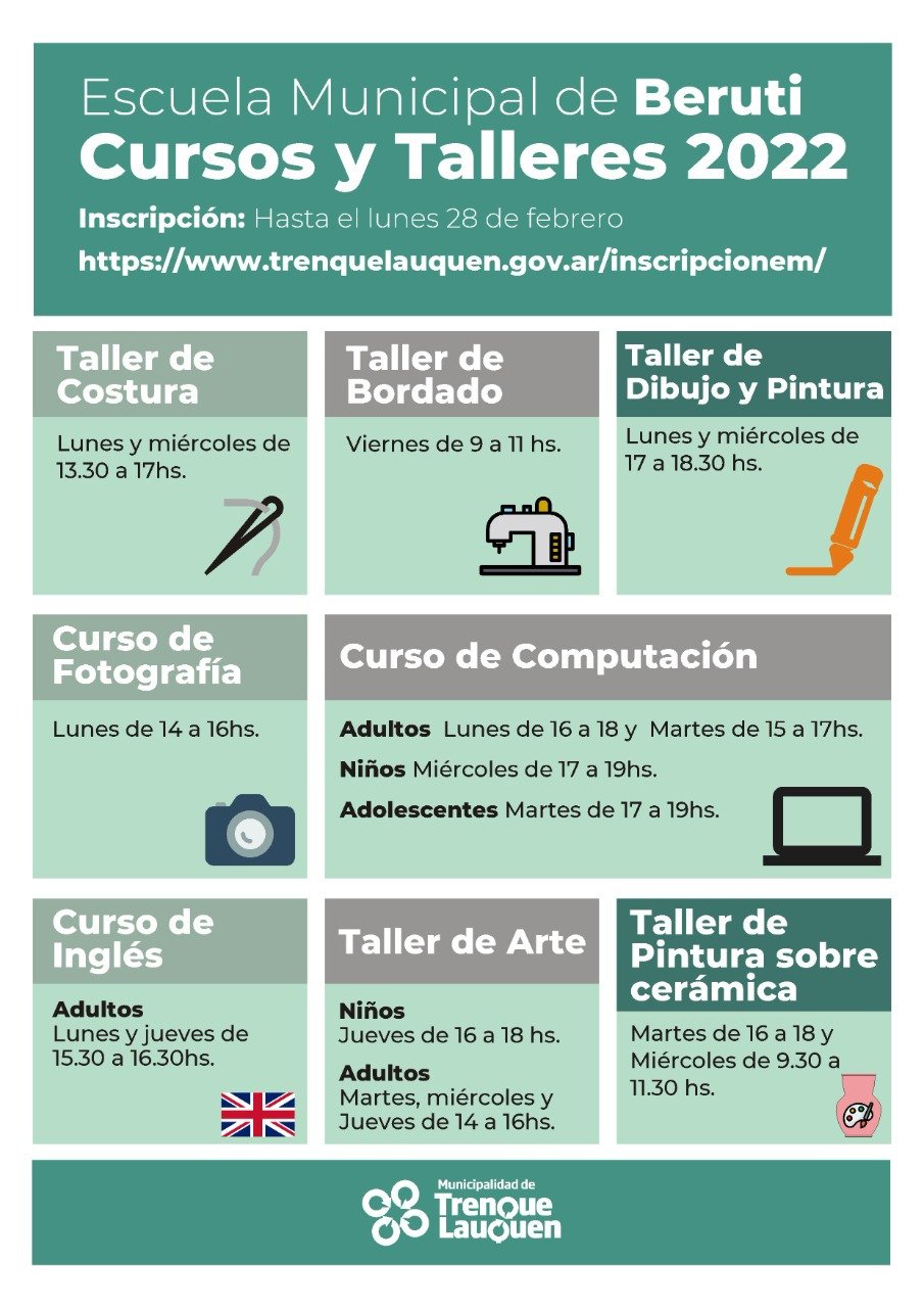 La Escuela Municipal ofrece cursos, talleres y clases de apoyo en Trenque Lauquen, Beruti, 30 de Agosto y Girodías.