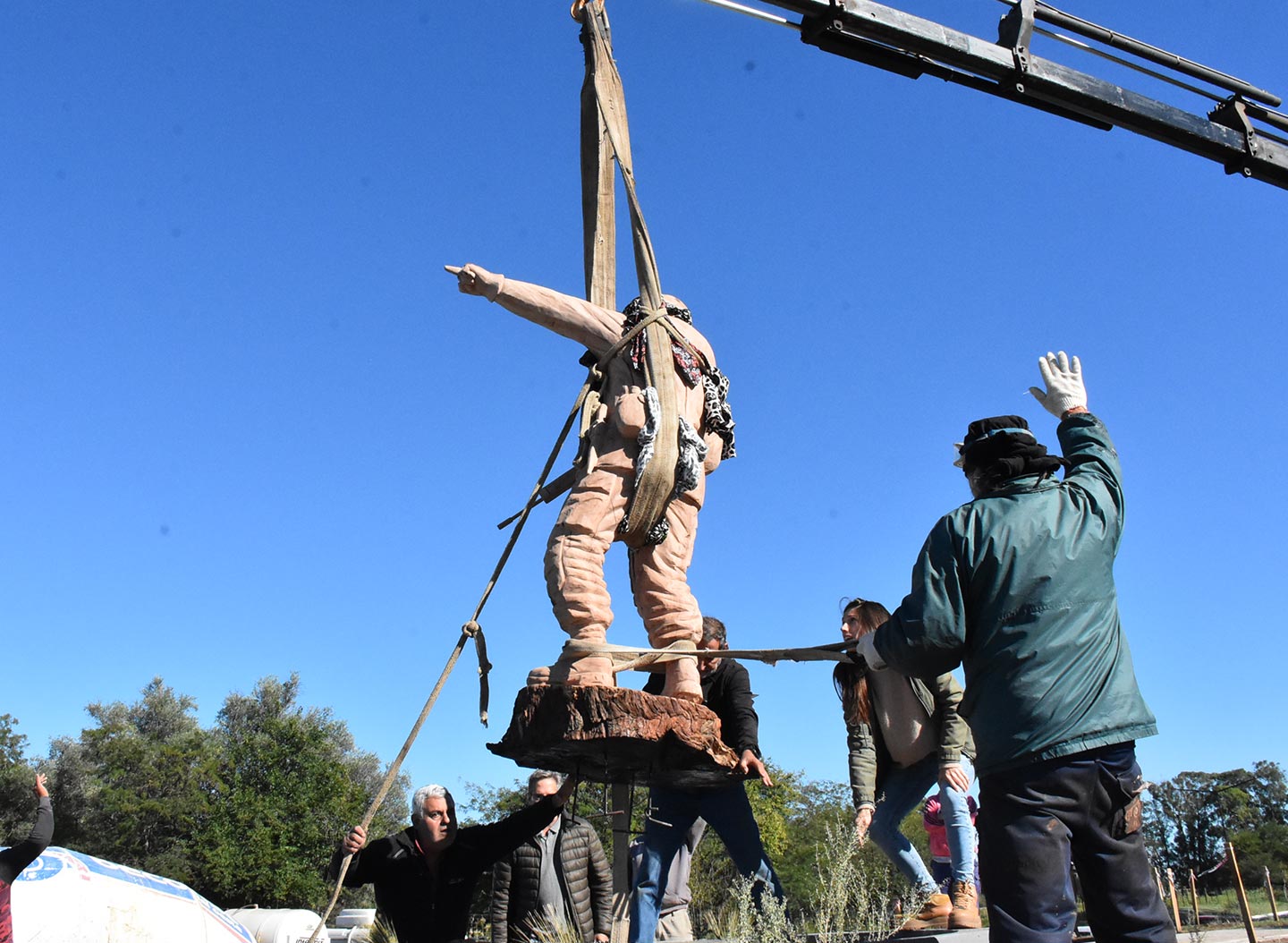 La figura está tallada en un tronco de algarrobo, de un antiguo árbol de más de 400 años, que fue traído a Trenque Lauquen desde el monte tucumano, de la comunidad de Amaicha del Valle. Este algarrobo es muy importante ya que se trata de un árbol que la comunidad cuida y valor mucho, haciendo la donación por tratarse de una causa noble, que acompaña a los combatientes, sus familias y los caídos.