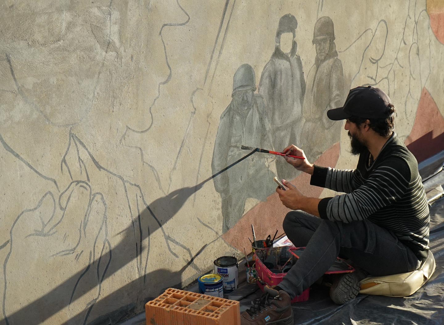 En el mural se ve a un hombre, un ex combatiente, recordando con orgullo. Tiene una mano sobre el corazón, reforzando así la idea de que lo que cuenta es algo que nace de su interior y de su propia experiencia.