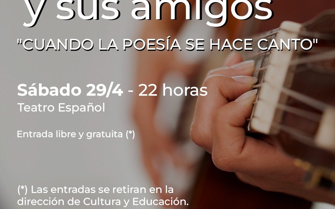 En otra propuesta artística que forma parte del programa de festejos por el 147º aniversario de Trenque Lauquen, el sábado 29 de abril a las 22 en el Teatro Español se presentará Abel Taybo y sus amigos con el espectáculo “Cuando la Poesía se hace Canto”, con el acompañamiento de la dirección de Cultura y Educación del municipio.