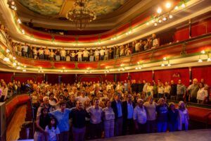 Uno de los momentos más emotivos de la noche se vivió con la participación de los veteranos de Malvinas, quienes recibieron un sentido reconocimiento por parte de toda la sala. El público presente se puso de pie y brindó un aplauso prolongado, en un gesto de respeto y gratitud que reflejó el profundo valor que su entrega y compromiso representan para la comunidad.