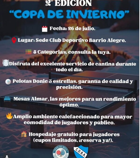 Con alrededor de 130 inscriptos de unas 14 ciudades del país, mañana (sábado), en la sede del Club Barrio Alegre se realizará la 2º edición de la “Copa de Invierno de Tenis de Mesa”, un evento deportivo de gran relevancia que reunirá a competidores de una amplia región.