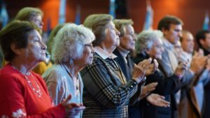 En representación de las homenajeadas, Guadalupe Tropini compartió recuerdos del intenso trabajo que llevaban adelante desde la Liga de Madres. “Además de arreglar la ropa, tejíamos ajuares para las mamás, entregábamos prendas, otras las arreglábamos para que pudieran usarlas”, señaló.
