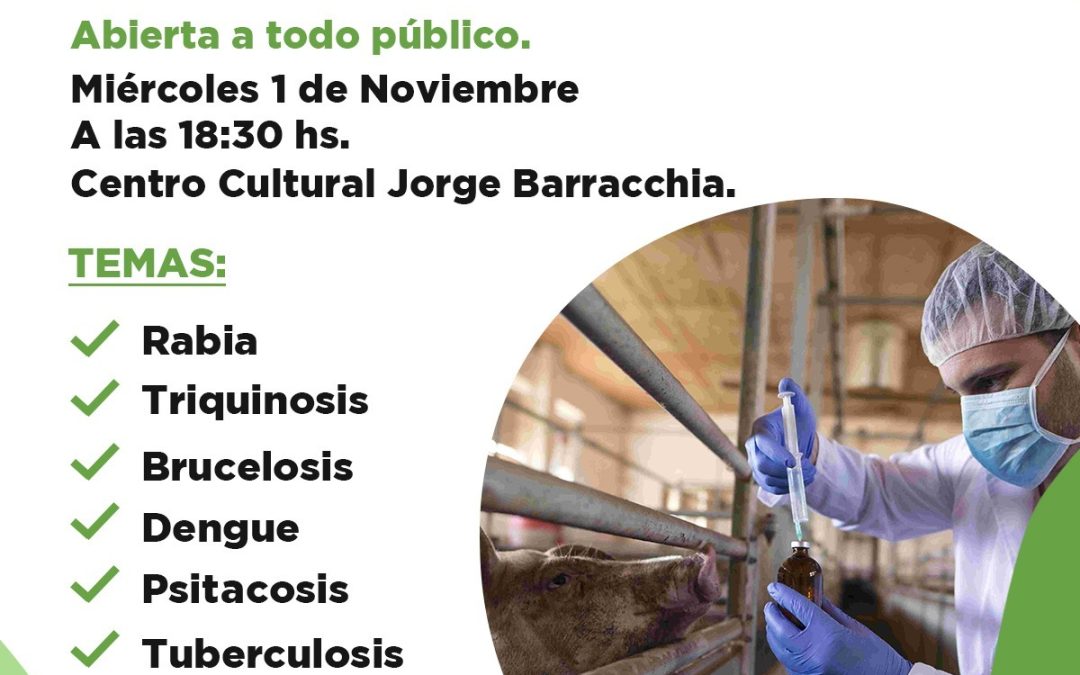 La charla incluirá los siguientes temas: Rabia, Triquinosis, Brucelosis, Dengue, Psitacosis y Tuberculosis.