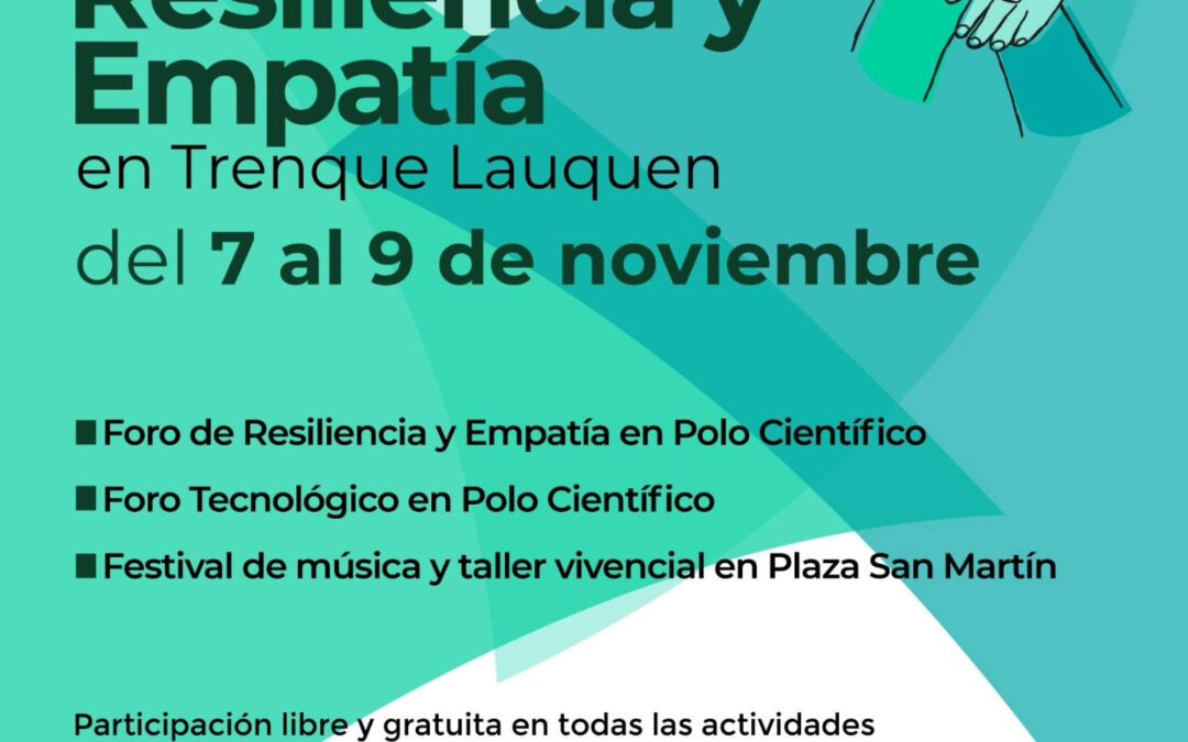 Desde el próximo jueves (7) y hasta el sábado (9) de noviembre se realizará en Trenque Lauquen el 3º Festival de la Resiliencia y Empatía que contará con múltiples actividades que se desarrollarán en instalaciones del Polo Científico Tecnológico Municipal (Hernández nº 816) y en la Plaza San Martín, con entrada libre y gratuita para toda la comunidad.
