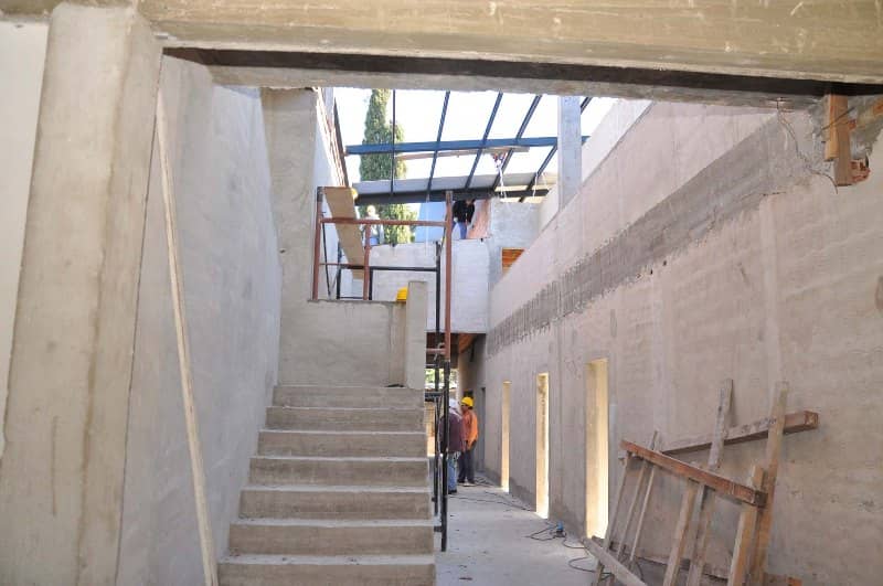 En estos días, se finalizaron las terminaciones de revoques interiores, tanto en planta baja como alta. En la planta baja se completaron los trabajos de instalación eléctrica y plomería, mientras que actualmente están comenzando a ejecutarse esas tareas en la planta alta del edificio.