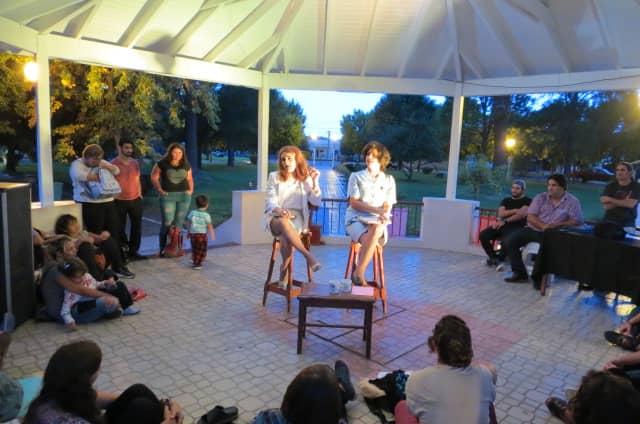 Por último, y con una intensa lluvia, las artistas Nacha Martínez y Victoria Alonso se subieron a la glorieta de la Plaza San Martín de 30 de Agosto para poner en escena la obra “Encendiendo hogares” que con un despliegue de humor asegura que “la Familia, la primera de las sociedades naturales, se encuentra bajo la amenaza de la modernidad, y esa es la razón de los constantes atentados que sufre como institución garante de la seguridad y la libertad de la propia familia, la sociedad y la nación”.