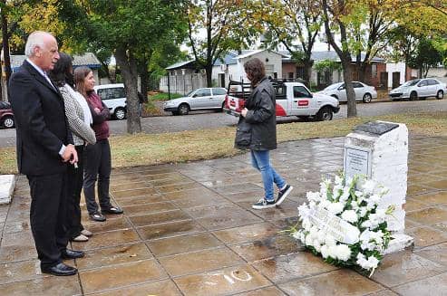 Luego del acto, el Intendente Municipal, y la Secretaria de Desarrollo Humano, acompañaron a los hijos del ex combatiente de Malvinas, Mario Castelló, quienes depositaron una ofrenda floral en el monolito que recuerda a los caídos.