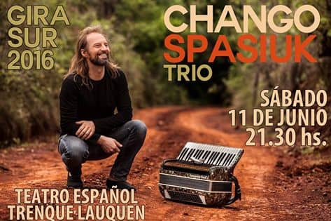 El reconocido compositor y acordeonista CHANGO SPASIUK se presentará el sábado 11 de junio en el Teatro Español de Trenque Lauquen, en el inicio de una nueva gira, con una puesta íntima en formato de trío. Las entradas anticipadas para este espectáculo se encuentran en venta en Dirección de Cultura municipal, de lunes a viernes de 7 a 13. En esta oportunidad, el gran músico argentino estará nuevamente acompañado por Marcos Villaba, en Guitarra y Percusión y Pablo Farhat en Violín. Esta gira se realiza a días del lanzamiento de