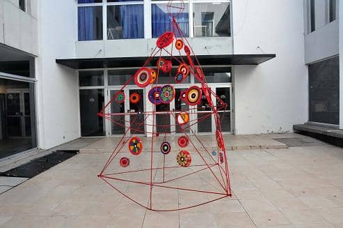Por iniciativa de la Secretaría de Ambiente y Desarrollo Sustentable del Municipio, se realizó un árbol de navidad con estructuras existentes de hierro que se usaron para otras fiestas. A esta estructura se le dio espacialidad y se agregaron tapas plásticas de latas de pintura de diversos tamaños y tapas de bordeadoras rotas, se ataron con alambre a la estructura, dándole forma y color.