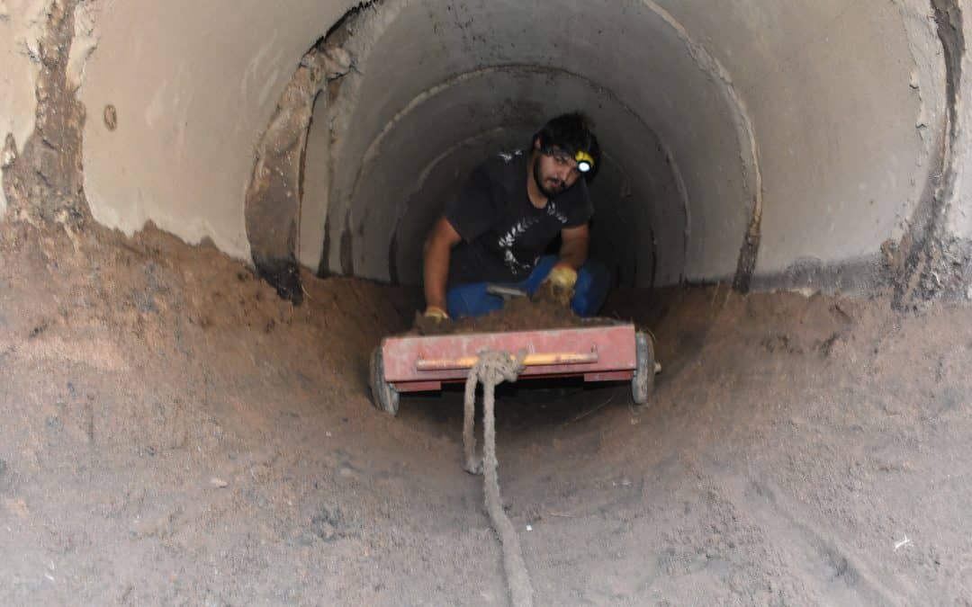 Enrietti se refirió al trabajo arduo que realizan los empleados municipales dentro de la tubería de un metro de diámetro y donde hay más de 60 cm. de barro y mucha basura. “Hay que entrar con mucha precaución. Es un tramo que tiene entre una cámara y otra, 200 metros, y eso dificulta su limpieza. Estamos practicando un corte cada 30 ò 40 metros, haciendo doble entrada y aireación para los trabajadores”.