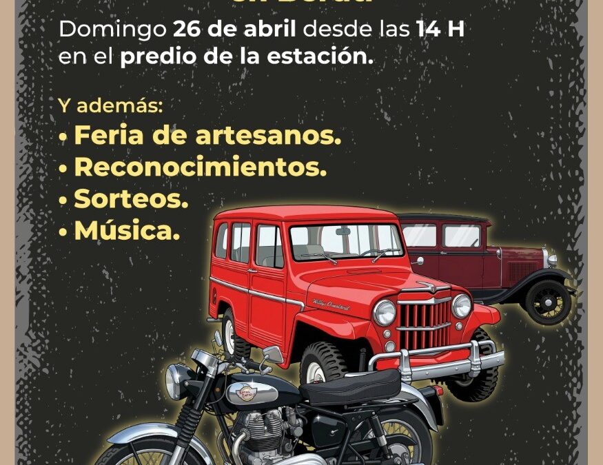 El domingo 26 de abril desde las 14 h en el predio de la Estación de Beruti, tendrá lugar el 3º Encuentro de Motos y Autos Clásicos, organizado por la Delegación municipal, el área de Cultura y el Museo del Agro.