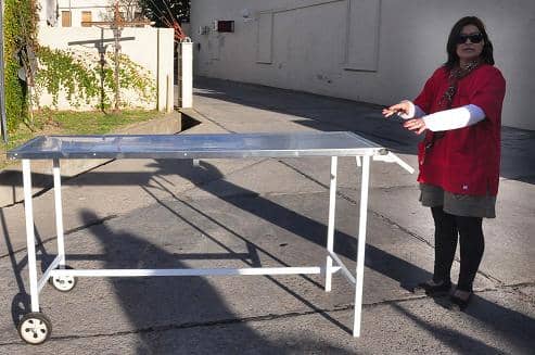 Se trata de una camilla de acero que se utilizará para la esterilización de mascotas, realizar análisis de triquinosis, y las actividades propias del área.