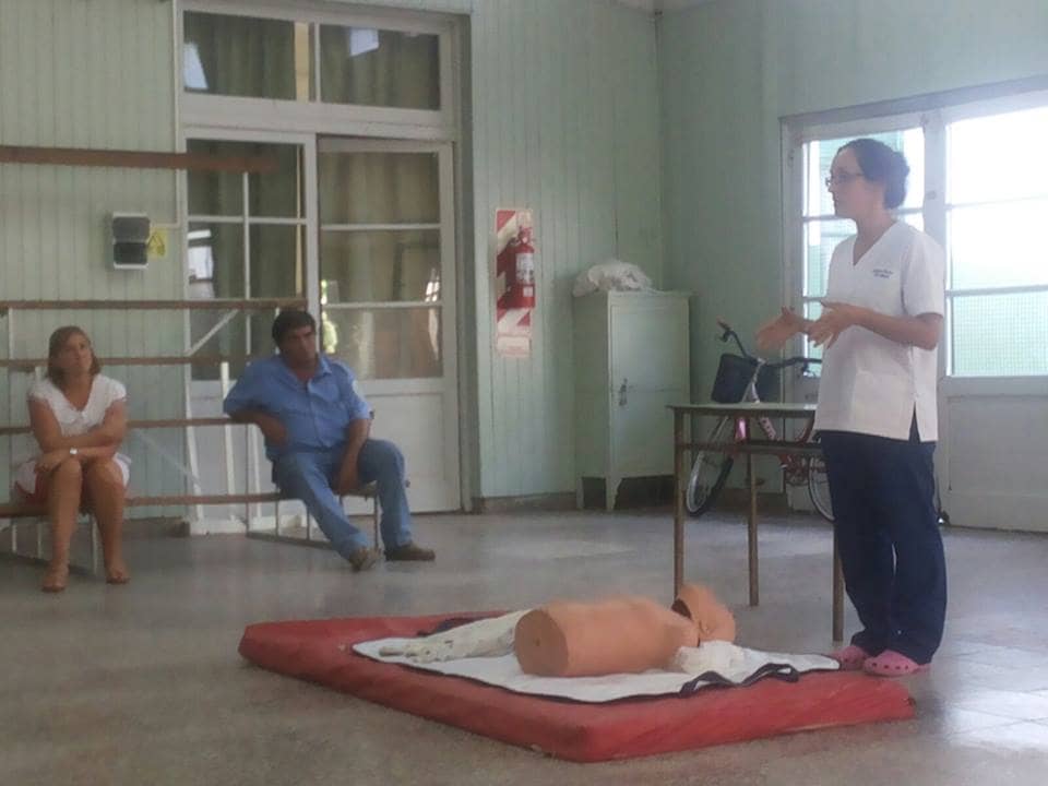 El personal de Defensa Civil Municipal estuvo junto la Licenciada en Enfermería Analía Romero, quien además es docente de Enfermería en el Instituto Nº 40 de Trenque Lauquen, en las escuelas Nº 2 y 501, trabajando con docentes y personal auxiliar de los establecimientos educativos, para aportar conocimientos en torno a RCP y primeros auxilios.