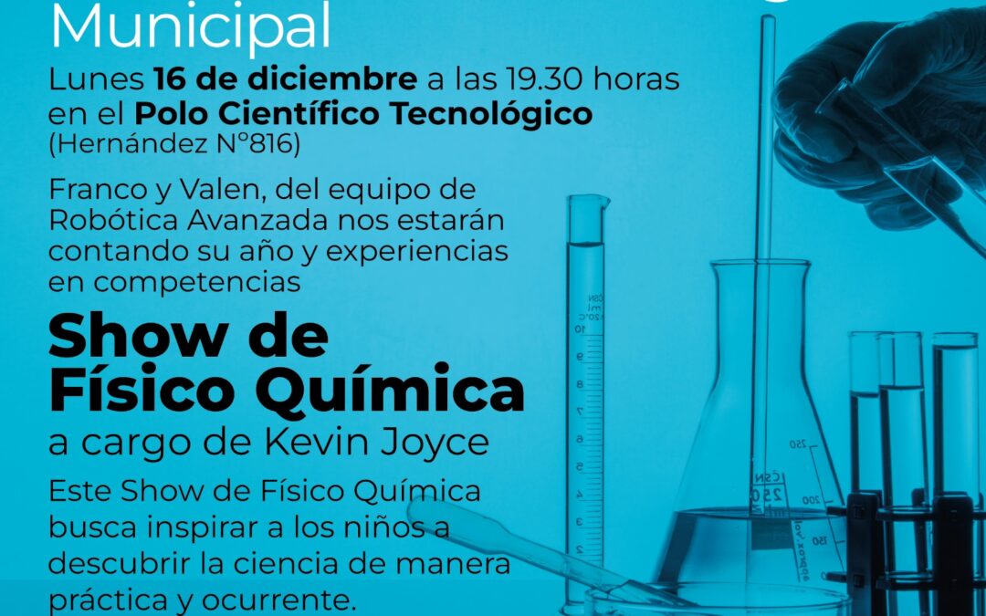 Franco y Valen, del equipo de Robótica Avanzada, contarán el trabajo desarrollado durante el año y experiencias en las competencias y para finalizar habrá un Show de Físico Química a cargo de Kevin Joyce.