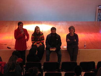 Durante el encuentro, la trenquelauquense Manuela Rossi acompañó a Claudia Cesaroni y relató el trabajo que se realiza en la cooperativa “Esquina Liberta”, imprenta donde se realizó la segunda edición de “Masacre en el Pabellón Séptimo”.