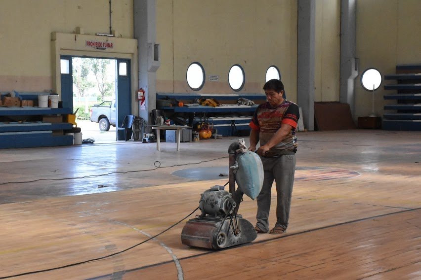 Acerca de los trabajos, Barbas explicó que “primero hubo que reparar el techo que se llovía y ahora se comenzaron a levantar las partes donde el piso estaba flojo y la pelota no picaba bien, para luego proceder al lijado del piso, pintado, laqueado y el marcado de todas las canchas”.