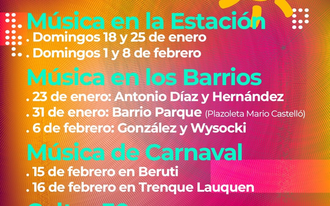 La propuesta incluye el tradicional y popular ciclo Música en la Estación, Música en los Barrios y los festejos de Carnaval, con una programación diversa que recorrerá distintos puntos del distrito y contará con la participación de numerosos artistas locales y de la zona.