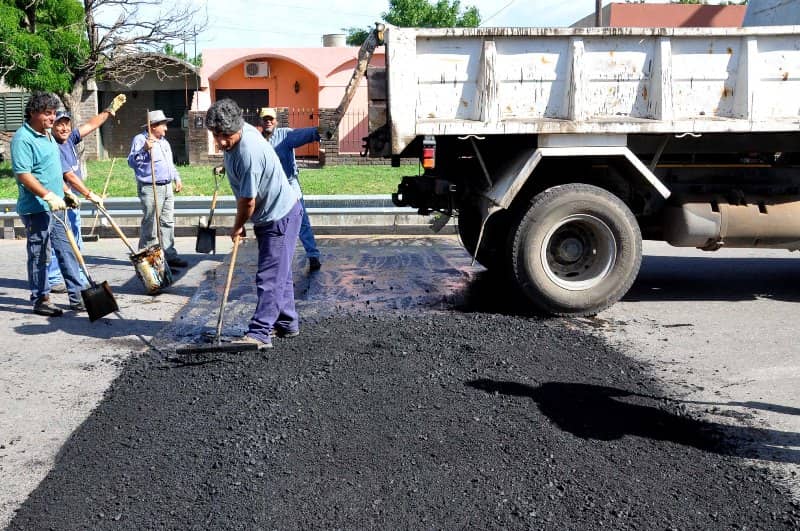 Un grupo de agentes municipales trabajaba esta mañana (martes) en la construcción de 5 lomos de burro en el interior del Barrio Güemes y en la reparación de pavimento en la plaza del barrio UOCRA, que da a la calle Raúl González.