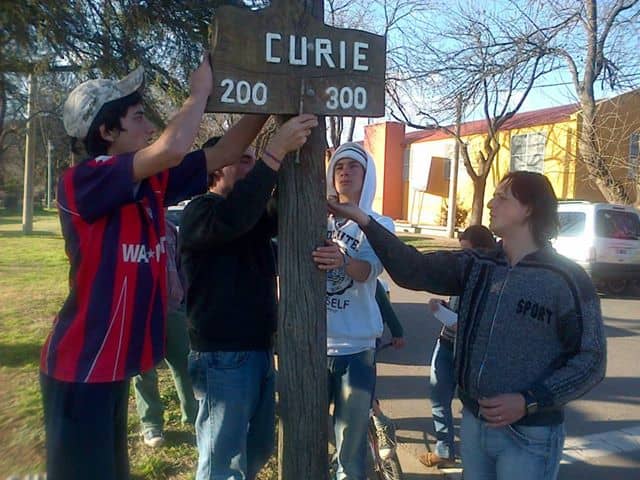 De esta manera, avanzan con la restauración y colocación de nuevos carteles indicadores de calles en el sector noroeste de la ciudad, específicamente en los barrios Parque y Evita – Centenario. Esta actividad es realizada desde el mes de agosto por beneficiarios del Programa y jóvenes del barrio, quienes se encargan de retirar los carteles deteriorados, restaurarlos y volver a colocarlos.