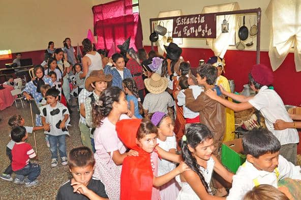 Los chicos reciben el desayuno en el lugar, luego los que asisten al colegio en turno mañana son llevados en el transporte municipal y los que asisten por la tarde se quedan realizando diversas actividades, hasta el momento del almuerzo, y posteriormente, son llevados también, a la escuela.