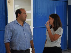Durante la jornada de hoy (miércoles) el intendente Francisco Recoulat recorrió el gimnasio para supervisar el avance de la obra y dialogar con los muralistas sobre el trabajo que están llevando adelante. La visita la hizo junto a la subsecretaria de Desarrollo Humano Emilia Cueli y el director de Obras Públicas César Fracchia.