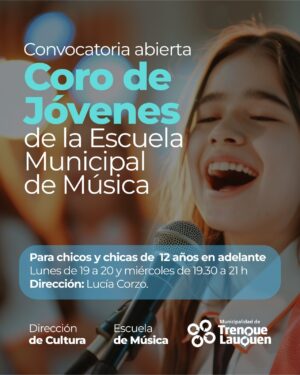 Desde las agrupaciones corales que funcionan en la Escuela Municipal de Música, dirigidas por Lucía Corzo, se convoca a niños, niñas y adolescentes para que se sumen a estas propuestas que son públicas y gratuitas.