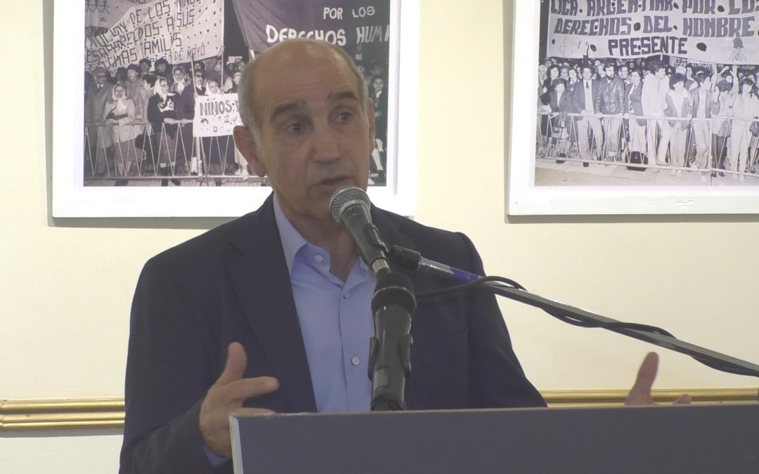“Al cumplirse 40 años de democracia, no puedo dejar de recordar todo lo que fue ese gran desafío en aquel momento (en relación al trabajo de la CONADEP), eran tiempos donde imperaba el miedo, había desconocimiento, donde las dictaduras estaban en todos los países que rodeaban a la Argentina, y eran tiempos donde ya se había generado la idea de que normalmente la continuidad de un gobierno democrático era un golpe de Estado, porque venía ocurriendo desde 1930 en adelante”, comenzó hoy (jueves) su mensaje el ex vicegobernador bonaerense Daniel Salvador, con motivo de la inauguración de la Muestra Homenaje a la CONADEP en el Teatro Español.