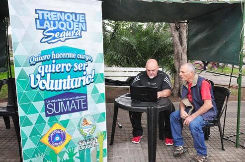 Integrantes del equipo de Defensa Civil Municipal estuvieron hoy (lunes) en un gazebo frente al Palacio Municipal realizando tareas de sensibilización.