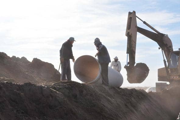 La Municipalidad de Trenque Lauquen comenzó días pasados a trabajar en la colocación de los caños de desagües pluviales en la Ampliación Urbana, con la coordinación de Cristian Rabasa, Director de Planeamiento y Urbano.