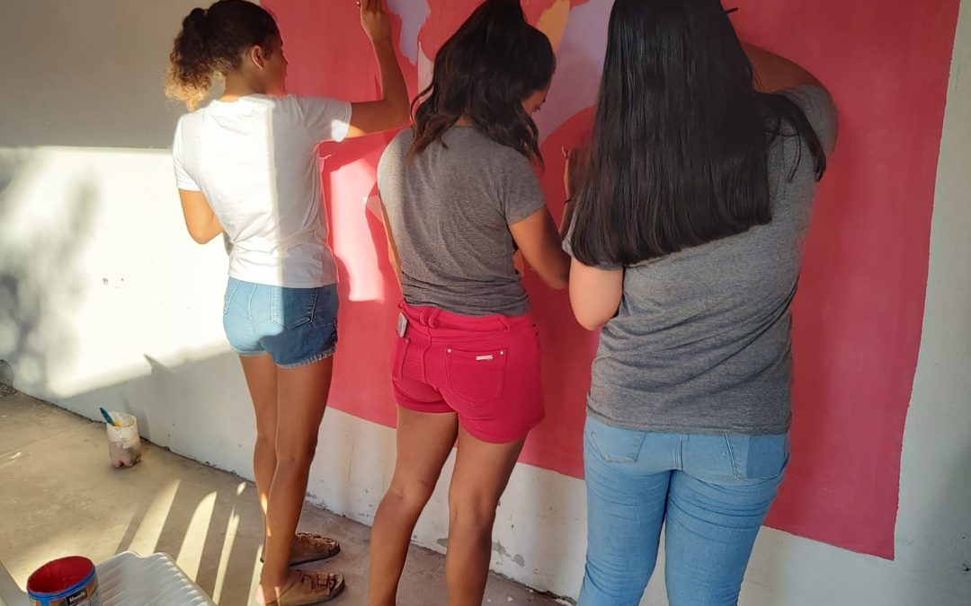 Los jóvenes del Espacio de Adolescentes de Beruti estuvieron pintando el mural que fue pensado y diseñado para conmemorar el Día Internacional de la Mujer, y que quedará inaugurado pasado mañana (miércoles) a partir de las 18 en la sede del espacio: el Club de Tejo de la localidad.