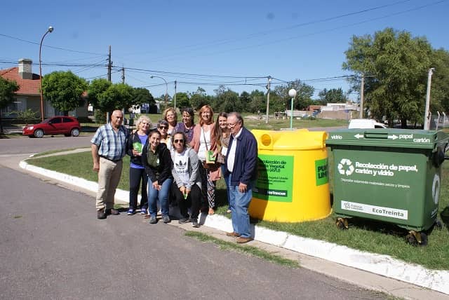 En cada lugar se encuentran 3 contenedores identificados que posibilitan depositar botellas y envases plásticos (azul) el color verde (para vidrio, papel y cartón) y el amarillo (para aceite vegetal usado).