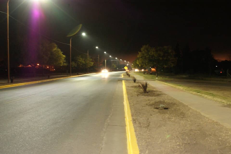 El ingreso a Treinta de Agosto por el acceso Padre Dutrá, desde el pórtico de la ciudad hasta el cruce con la calle Salta, tiene nueva iluminación desde el viernes por la noche, cuando se estrenaron las primera 31 luminarias led, en reemplazo de las lámparas de sodio que tenía instaladas.