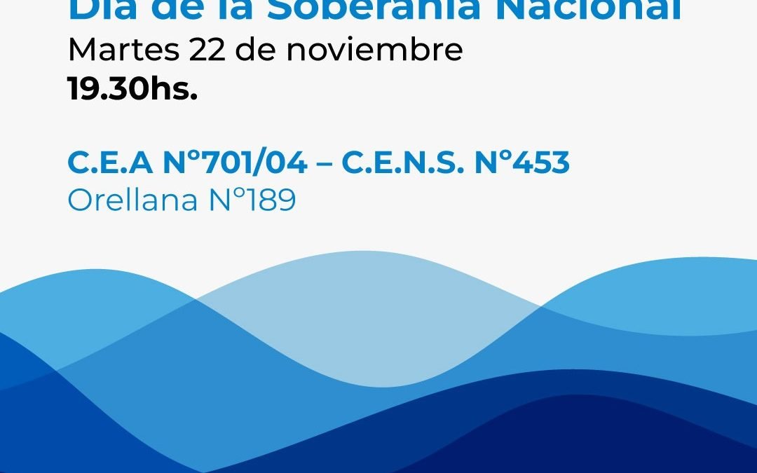 La municipalidad de Trenque Lauquen, el CEA nº 701/04 y el CENS nº 453 organizan en forma conjunta el acto de conmemoración del Día de la Soberanía Nacional, a realizarse el próximo martes, 22 de noviembre, a las 19.30 en instalaciones de la Escuela de Adultos 701, que funciona en Orellana nº 189.