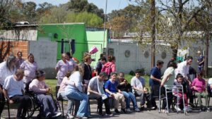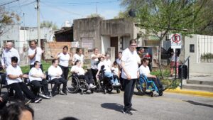 El encuentro contó con el acompañamiento del secretario de Gobierno, Martín Borrazás; de la directora de la Oficina para Personas con Discapacidad, Ana Etchepare, personal de la institución, familiares, amigos y residentes del Hogar municipal Cumen Che, quienes participaron activamente de la celebración, que comenzó en la calle, frente a la sede de la institución.