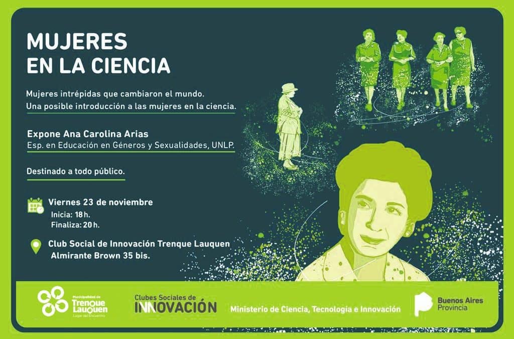 EL Club Social de Innovación está inscribiendo para participar de la charla “Mujeres en la Ciencia” que tendrá lugar mañana (viernes) a las 18 hs. en su sede de Brown 35 bis, y en la que la disertante, Ana Carolina Arias, Especialista en Educación de Géneros y Sexualidades de la Universidad Nacional de La Plata, hablará sobre las mujeres intrépidas que mucho tuvieron que ver en la historia de la ciencia.