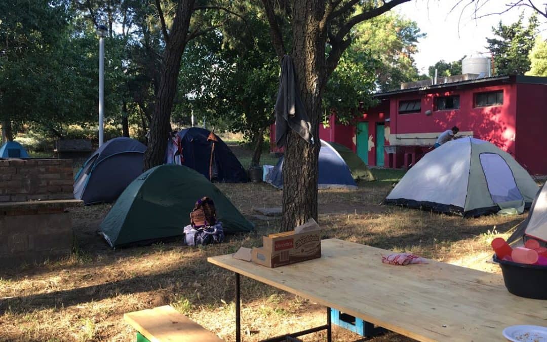 Cerca del mediodía el contingente estaba armando el campamento en el predio de la Sociedad de Fomento de Pehuen Có.