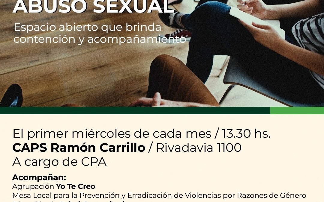 Desde ahora, el Encuentro para Familiares de Víctimas de Abuso Sexual comenzará a funcionar en el CAPS Ramón Carrillo (Rivadavia nº 1100) el primer miércoles de cada mes, en el mismo horario en que lo venía haciendo: 13.30.