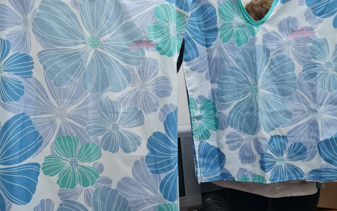 Las integrantes del grupo cosieron y bordaron nueve (9) camisolines para el área de Ecografía, diez (10) chaquetas para el personal que realiza mamografías y cuatro (paños).