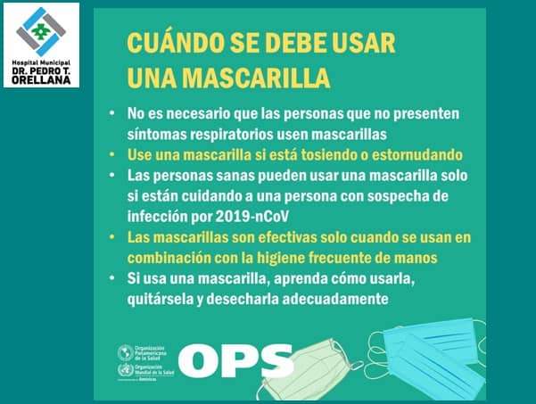 El uso de mascarillas faciales durante brotes de enfermedades virales como la enfermedad por coronavirus 2019 (COVID-19) de acuerdo a la OPS/OMS se ha demostrado en estudios científicos que sólo es efectivo para proteger a los trabajadores de la salud y para reducir el riesgo de que pacientes enfermos diseminen la enfermedad. Con base en esa evidencia, la Organización Panamericana de la Salud/Organización Mundial de la Salud (OPS/OMS) recomienda el uso de máscaras faciales a: