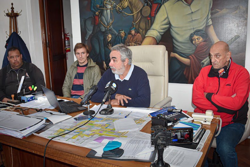 “En el transcurso de este evento climático extraordinario se recibieron 160 llamados de pedidos de auxilios o notificaciones de eventos, hubo tres (3) voladuras de techos, una familia auto evacuada, con cinco integrantes que fueron alojados en la casa de un pariente, y hubo tres vehículos aplastados por árboles o postes de electricidad o teléfono”, comenzó explicando el Intendente Fernández en su despacho, acompañado por el secretario de Gestión y Administración Pública, Martín Borrazás; el presidente del Consejo Directivo de Bomberos Voluntarios, Juan Nappi y el integrante de la institución Pablo Arango.
