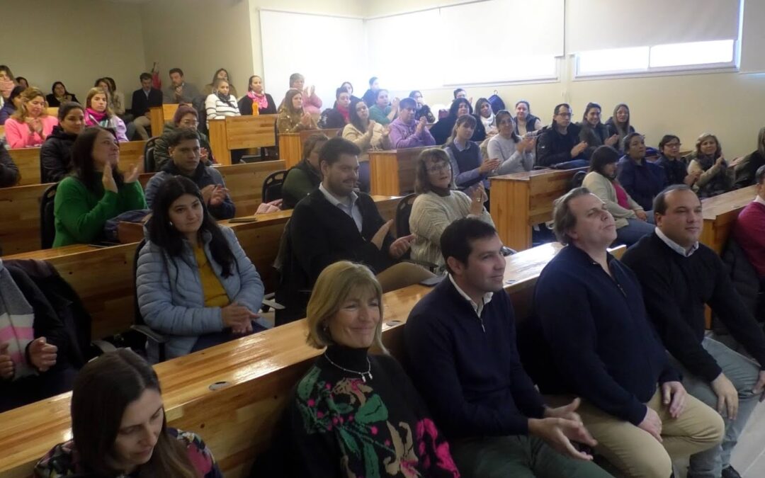 Luego de los discursos y culminado el acto formal, se dio comienzo a la clase presencial que estuvo a cargo de las docentes de la Universidad de Tres de Febrero, Patricia Nieves y Silvia Pérez.
