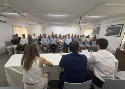 El intendente estuvo acompañado por el subsecretario de Producción y Desarrollo Económico, Germán Lauro, y la directora de Educación, Marisol Basso. Además, participaron representantes de instituciones intermedias y de la comunidad universitaria, entre ellos autoridades de la Cámara de Comercio, del Centro de Ingenieros y de Rotary.