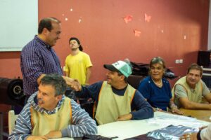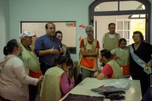 Durante el encuentro se generó un emotivo intercambio, en el que los presentes agradecieron el acompañamiento y la presencia del intendente, quien pudo compartir los trabajos que realizan y las actividades productivas que se desarrollan en el Taller, entre ellas la confección de bolsitas, cepillos, trapos de piso, budines y pizzetas, productos elaborados con dedicación y compromiso, y que la comunidad puede adquirir para colaborar con la institución.