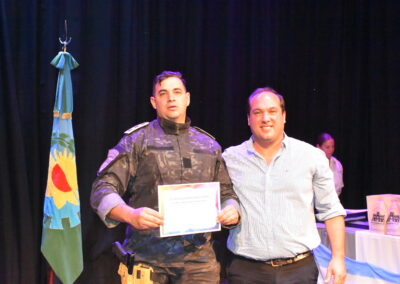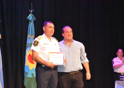 “En la tarea de brindar seguridad ciudadana no trabajamos solos ni tampoco nos sentimos solos, actualmente se trabaja de manera intersectorial y en red con otros organismos del Estado como el Ministerio Público Fiscal, el Municipio con sus distintas áreas, el Juzgado de Familia, las áreas de educación, salud, la Sociedad Rural, la Cámara de Comercio, Bomberos Voluntarios, las comisiones barriales, entre otros, a quienes agradezco su apoyo constante y la buena predisposición para coordinar trabajo, siempre en búsqueda del bien común”, expresó.