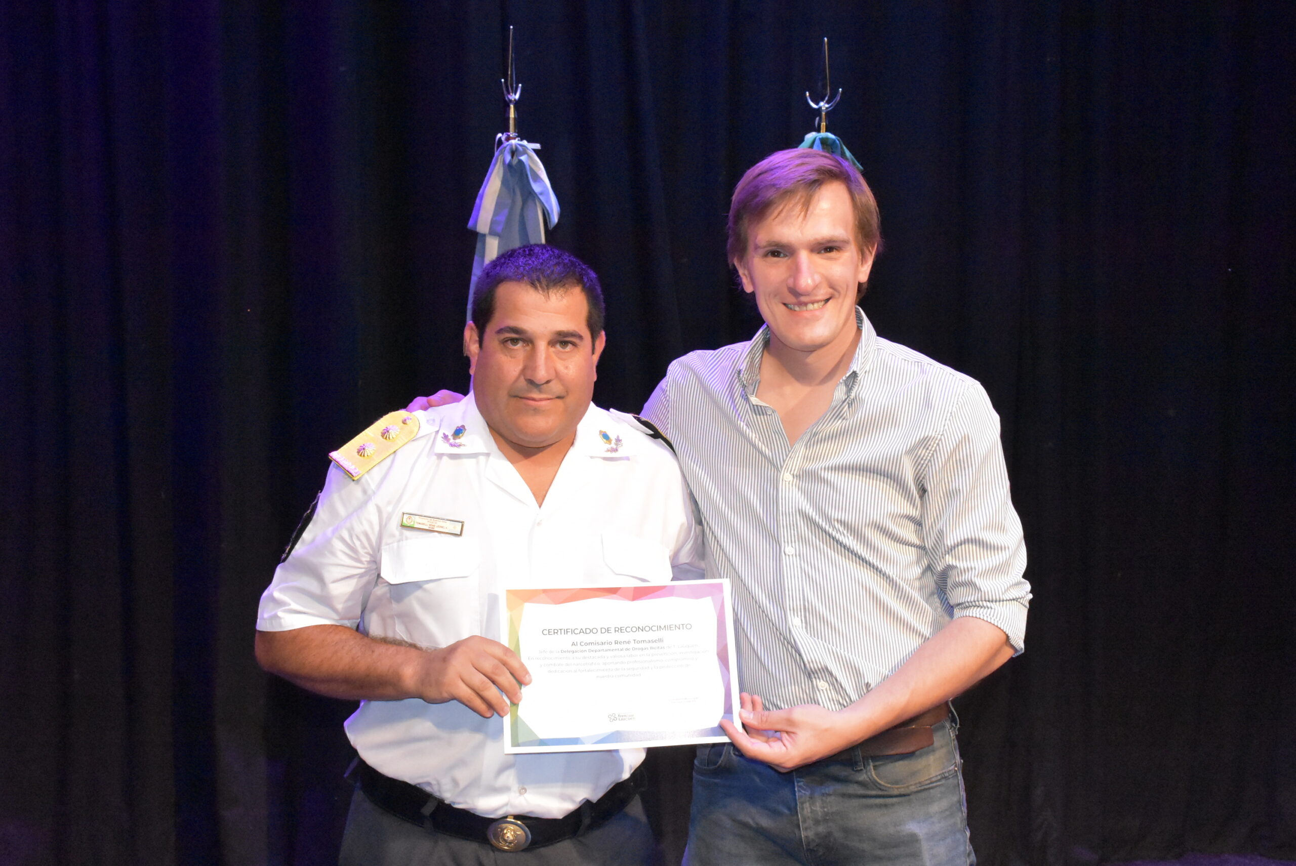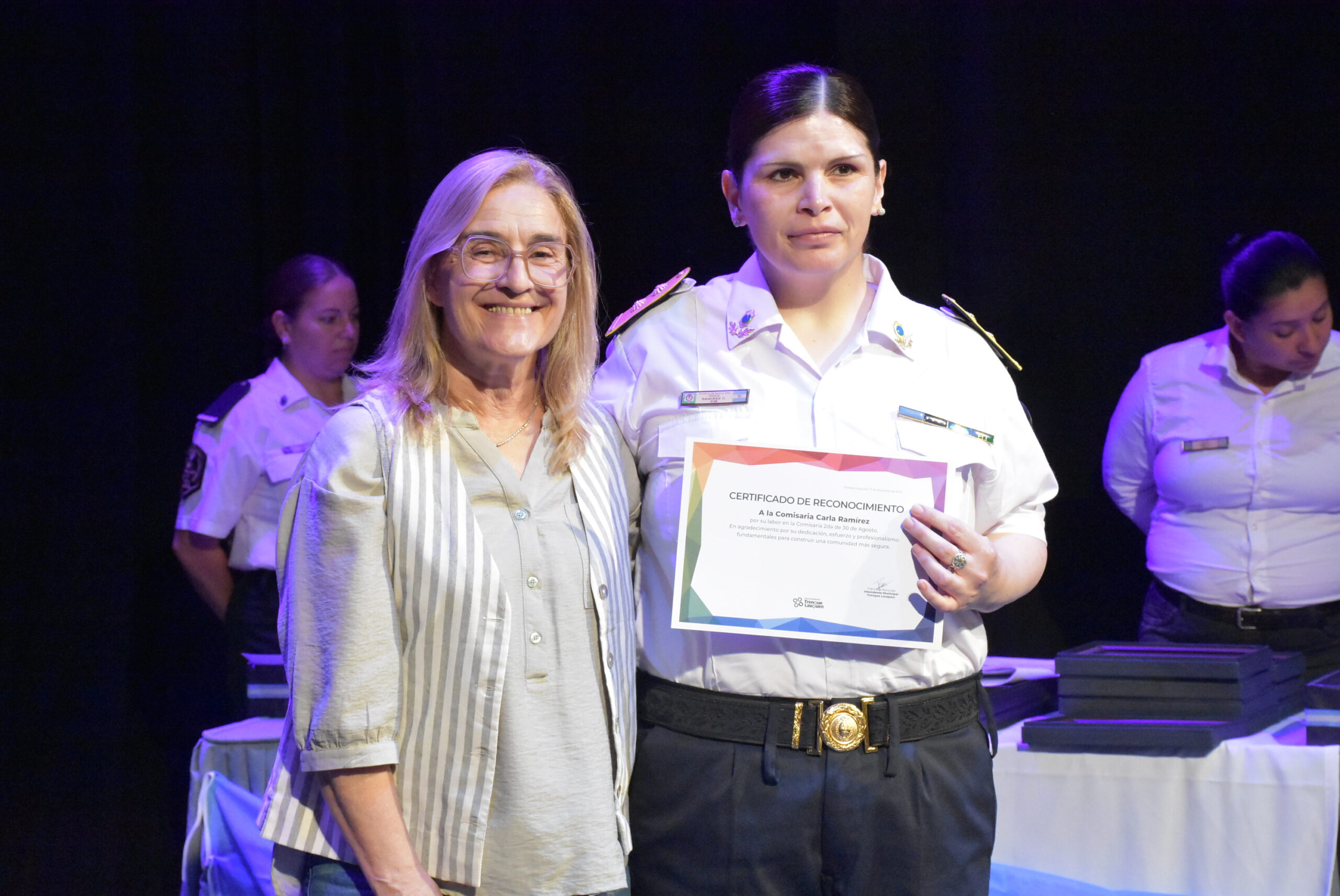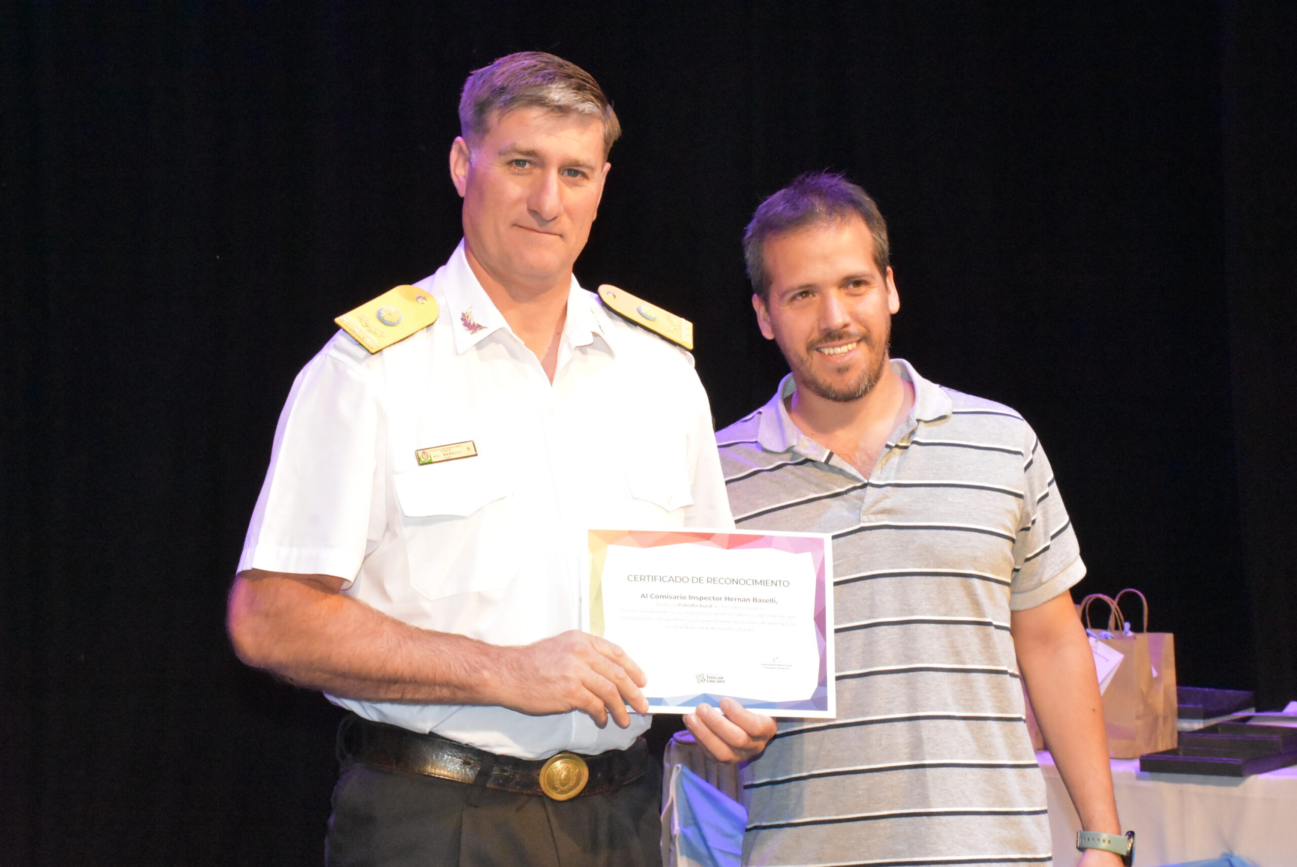 El Municipio también entregó certificados al titular de la Patrulla Rural de Trenque Lauquen, Comisario Hernán Baselli y a su equipo de trabajo; al jefe del Grupo operativo DDI Trenque Lauquen, Comisario Fabián Medina; al Comisario Mayor René Tomaselli, Jefe de la Delegación Departamental de Drogas Ilícitas Trenque Lauquen en la lucha contra el narcotráfico; a la Jefa del Gabinete Técnico Operativo, Oficial Ayudante María Cecilia Constantini, por su labor y entrega por la seguridad de la localidad de Trenque Lauquen; al Jefe del Destacamento de Beruti Oficial Principal Jorge Gabriel González; y al Jefe del GAD Miguel Ángel Galdós por su labor destacada y compromiso durante 2025.