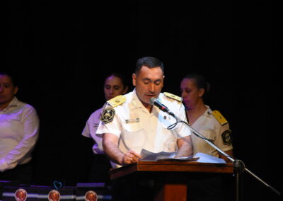 En su mensaje a los presentes, el Jefe de la Policía Departamental, Comisario Inspector Marco Antonio Arregui, señaló: “En más de dos siglos de historia que tiene nuestra institución la misma ha ido acompañando el crecimiento y la evolución de la sociedad. Es una Policía que se ha modernizado y profesionalizado sabiendo adaptarse con el fin de contrarrestar las nuevas modalidades de delito que fueron surgiendo a través de los años, desarrollando nuevos métodos de investigación, aprovechando las innovaciones tecnológicas y los avances de la ciencia.”